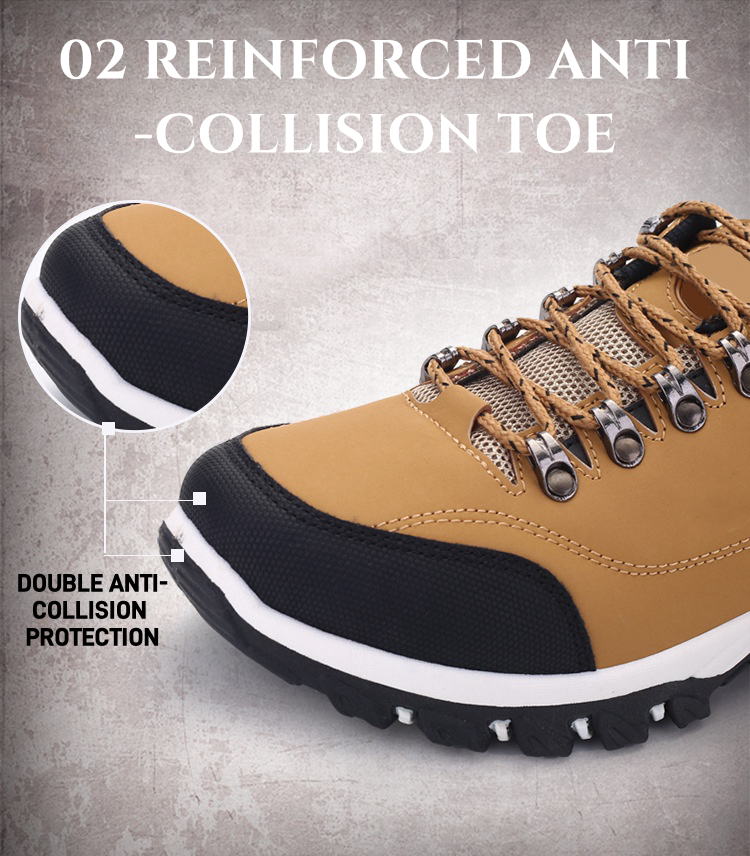 The shoes are equipped with a REINFORCED ANTI-COLLISION TOE CAP to protect your feet from ROCKS AND DEBRIS, ensuring SAFETY on challenging trails.