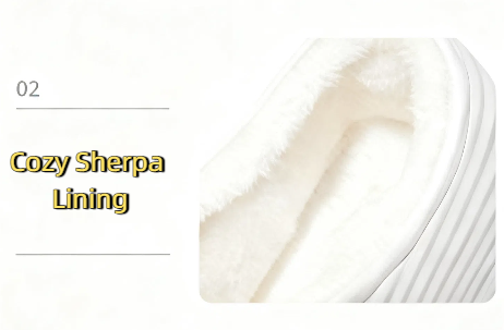 Thick sherpa lining traps heat without overheating, keeping your feet warm on cold floors or during chilly evenings. It gently wicks moisture, avoiding the clammy feeling of synthetic liners, and works with the cushioned, arch-supporting footbed to reduce foot fatigue. Perfect for relaxed mornings or unwinding after a long day.