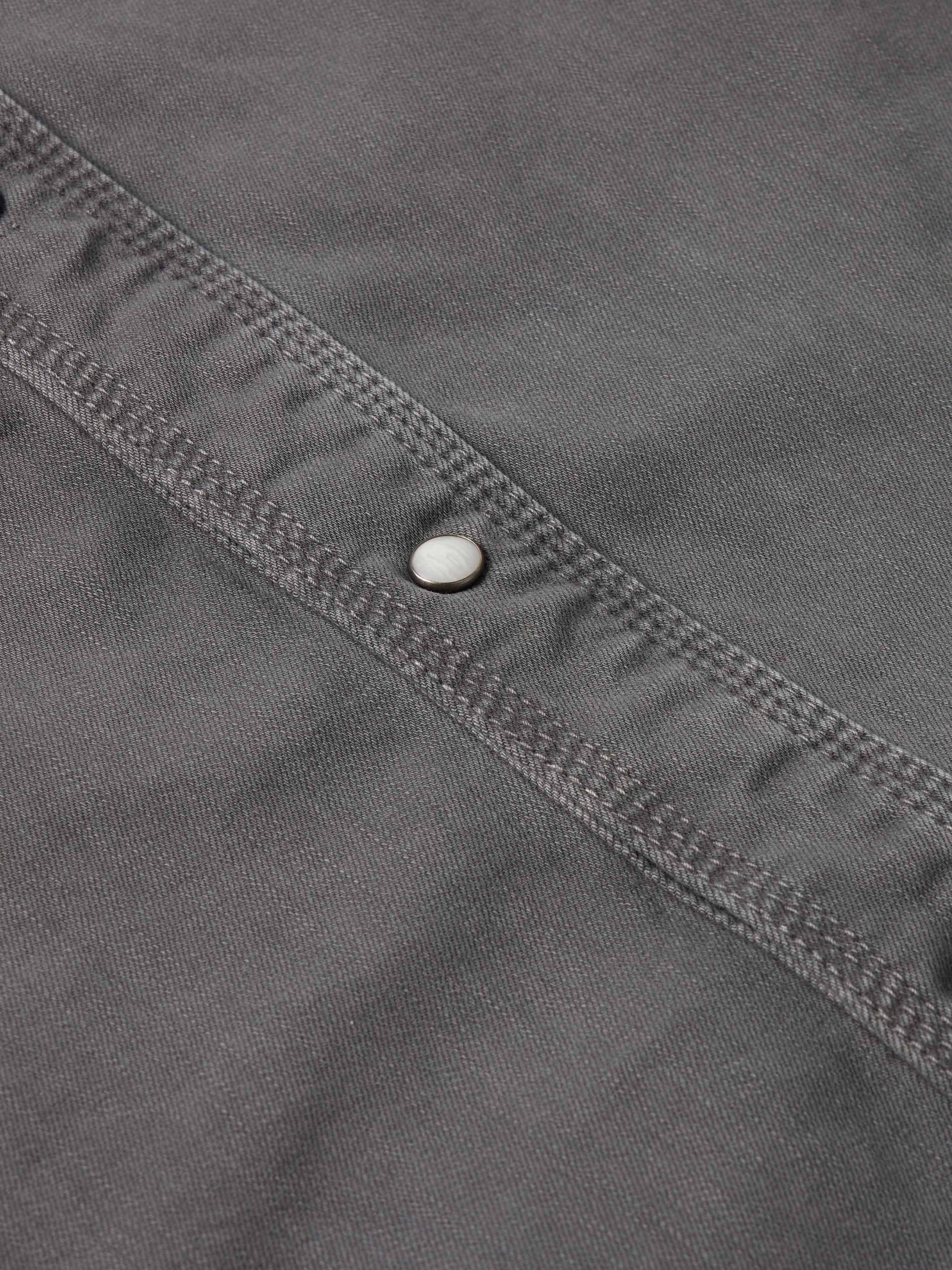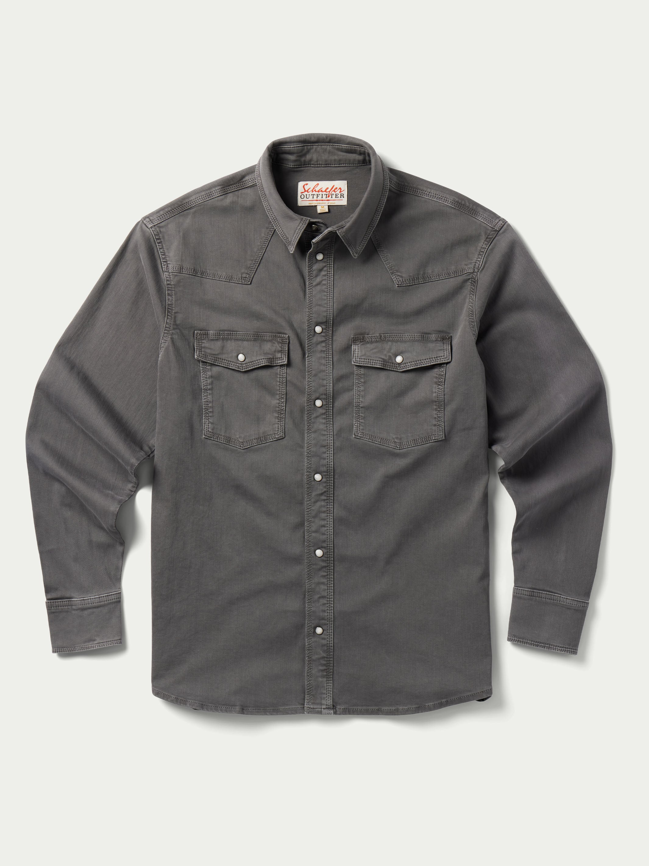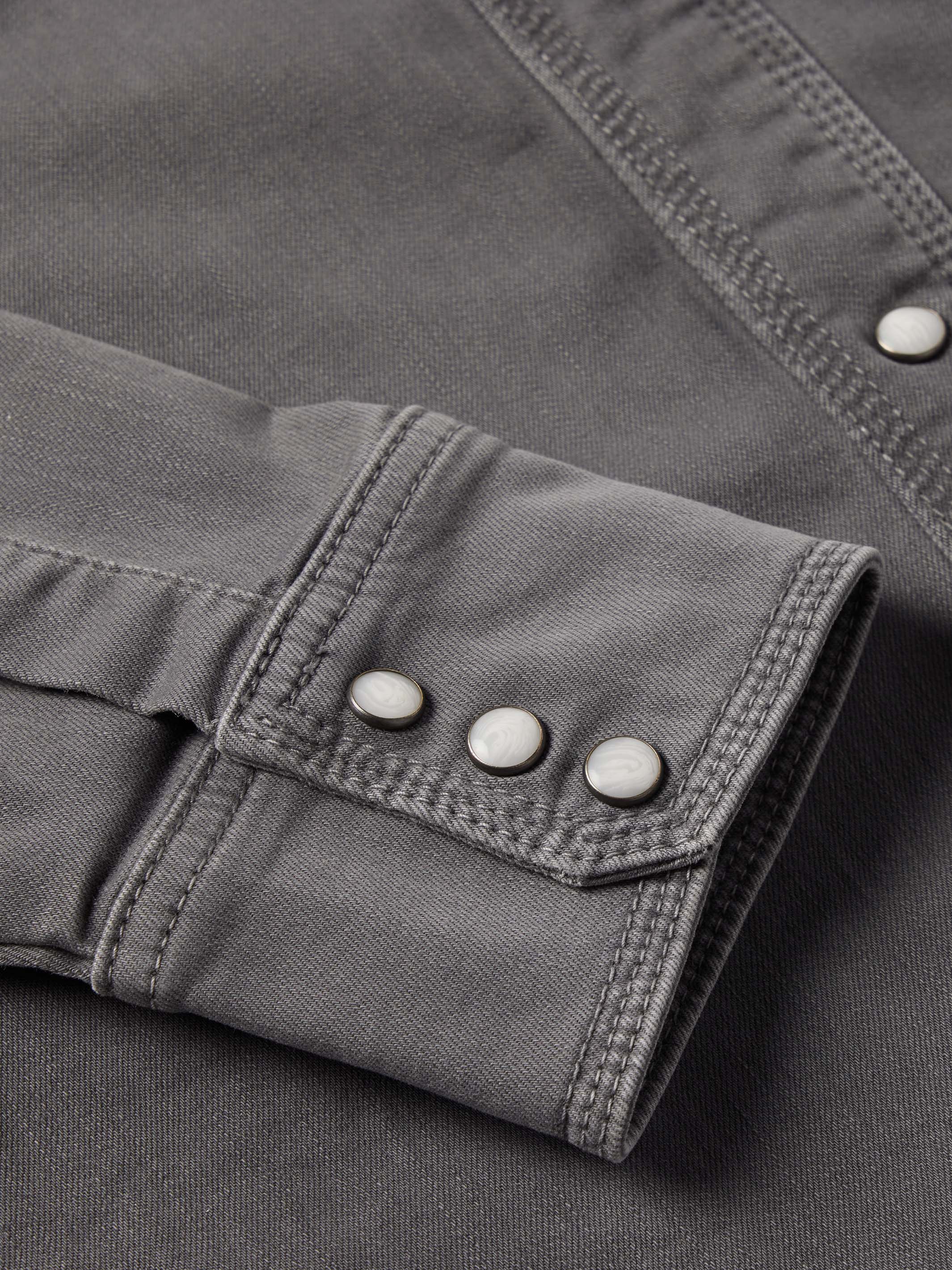 A classic, western denim snap shirt with added stretch for comfort.