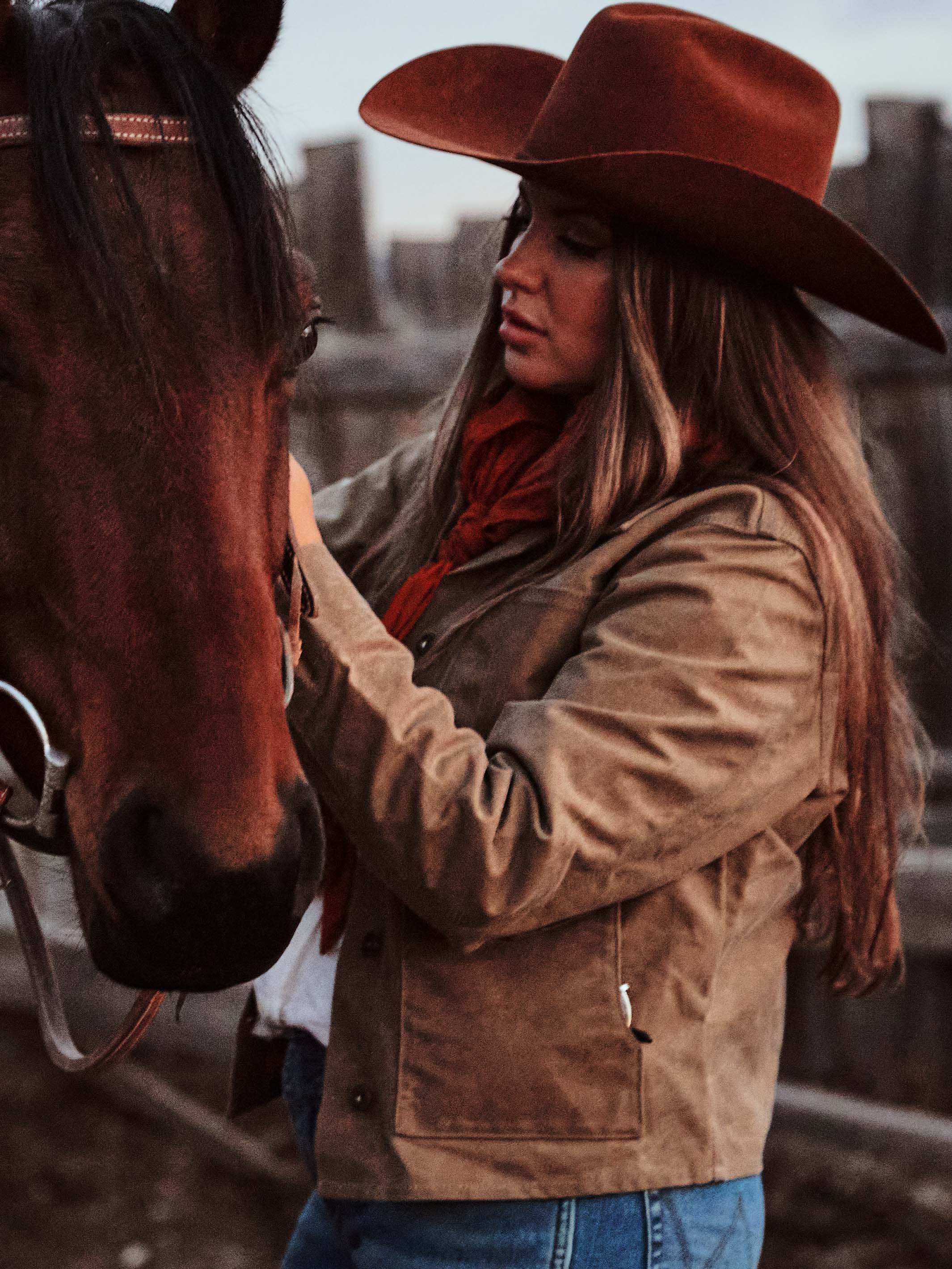 Introducing our new waxed canvas jacket intentionally designed with the cowgirl in mind. Made from the same waxed cotton canvas and other materials as our men’s jacket but cut to fit a woman’s figure.